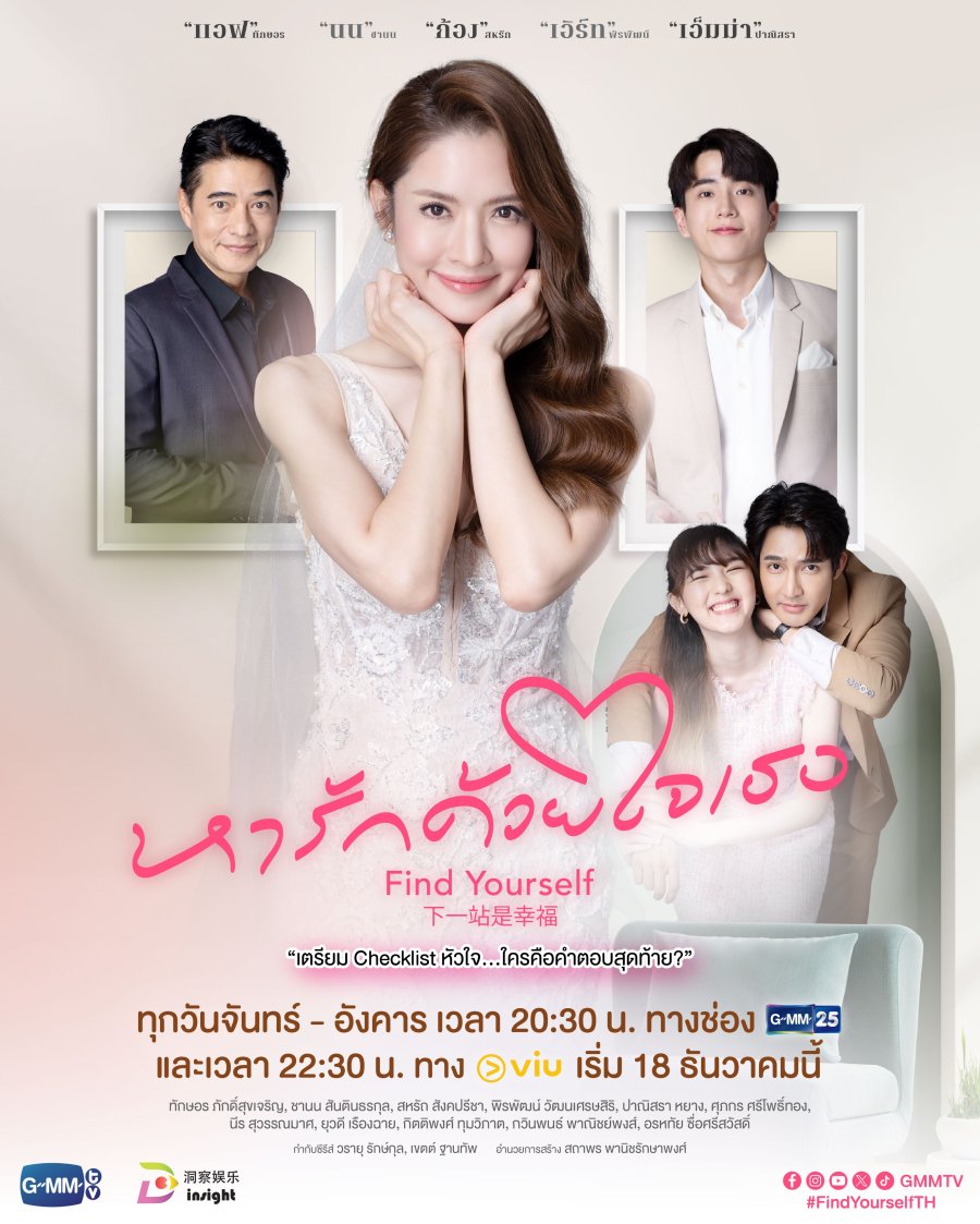 เมื่อ หยิน (แอฟ ทักษอร) MD สาวสวยสุดเพอร์เฟกต์ นัดเดตทีไรเธอก็คาดหวังว่าจะเจอแบบเห็นแล้วปิ๊ง คุยแล้วรัก แต่ก็ไม่เคยโดนใจสักที หลังมีข่าวลือว่าเธอยังแอบรักฝังใจรุ่นพี่สมัยมหาวิทยาลัยคนหนึ่งอยู่ แต่นั่นก็นานชาติมาแล้วจนหยินยังลืม แล้ววันหนึ่งโชคชะตาคงนึกสนุก ถึงจับคู่ให้หยินต้องมาเจอ เชน (นน ชานน) นักศึกษาฝึกงานหนุ่มรูปหล่อ ที่คอยเทกแคร์เธอดีเลิศเกินเบอร์ไปมาก จนคืนหนึ่งหยินดันเกินเลยกับเชน เพราะความเมามายไม่รู้ตัว ซึ่งถ้าเกิดเรื่องแดงเมื่อไหร่หยินคงแย่ แต่เชนที่น่าจะเป็นฝ่ายเสียหายกลับมาขอร้องอ้อนวอนหยินให้สานต่อความสัมพันธ์กันจริงจังซะงั้น ซึ่งระหว่างยังไม่ลงตัวจะคบหรือขาดกัน หยินได้พบกับ เรย์ (ก้อง สหรัถ) นักธุรกิจหนุ่มใหญ่ ที่มาจีบหยินอย่างเปิดเผย ซึ่งเรย์แนะให้หยินเปิดใจลองคบหาใครสักคนแบบระยะสั้นเหมือนทดลองงาน ที่จริงเรย์พูดไปเพื่อหวังจะเคลมเอง แต่ดันทำให้หยินตกลงใจลองคบกับเชนจอมตื๊อ ด้วยสัญญาทดลองเป็นแฟนกัน 3 เดือน สำหรับหญิงสาวโสดอย่างหยิน ความรักไม่ใช่แค่เรื่องของเธอคนเดียวอีกแล้ว แต่ยังมีลูกน้องไปจนถึงเพื่อนร่วมงานอย่าง แซนดี้ (นีร สุวรรณมาศ) และ แชมป์ (ป๊อด ศุภกร) ที่คอยจับคู่ให้เธอกับหนุ่ม ๆ เสมอ ไหนจะคนในครอบครัวอย่างพ่อและแม่ ที่เชียร์ให้หยินแต่งงานเสียที ที่แสบสุดก็คือ หยาง (เอิร์ท พิรพัฒน์) น้องชายผู้คอยเป็นพ่อสื่อนัดบอดให้ประจำ แต่ความรักของหยางก็ไม่ได้ราบรื่นขนาดนั้น เพราะเขาดันหวั่นไหวกับ มิ้นต์ (เอ็มม่า ปาณิสรา) ลูกศิษย์ต่างคณะ ภายในเวลา 3 เดือนนี้ หยินต้องค้นหาหัวใจตัวเองให้เจอ ว่าเธอชอบใคร ชายที่ดีพร้อม เพอร์เฟกต์ เหมาะสมทุกประการในสายตาคนรอบข้างอย่างเรย์ หรือคนที่อาจไม่มีอะไรดีพอในสายตาใคร ๆ แต่เป็นคนที่อยู่ใกล้ ใส่ใจ ทำทุกอย่างเพื่อบอกให้เธอรู้ว่าเขารักเธอมากกว่าใครอย่างเชน สุดท้าย !! บทสรุปความรักครั้งนี้ของเธอจะลงเอยกับใครกันแน่ ? มาลุ้นกันต่อได้ในซีรีส์ หารักด้วยใจเธอ Find Yourself ออกอากาศทุกวันจันทร์-อังคาร เวลา 20.30 น. ทางช่อง GMM25 และเวลา 22.30 น. ทาง Viu ซีรีส์ หารักด้วยใจเธอ Find Yourself เริ่มตอนแรกวันจันทร์ที่ 18 ธันวาคม 2566 และออกอากาศพร้อมกันในประเทศจีน รับชมบนแพลตฟอร์มจีน ได้ที่ Tencent Video และ YOUKU (ที่มา : GMM TV)