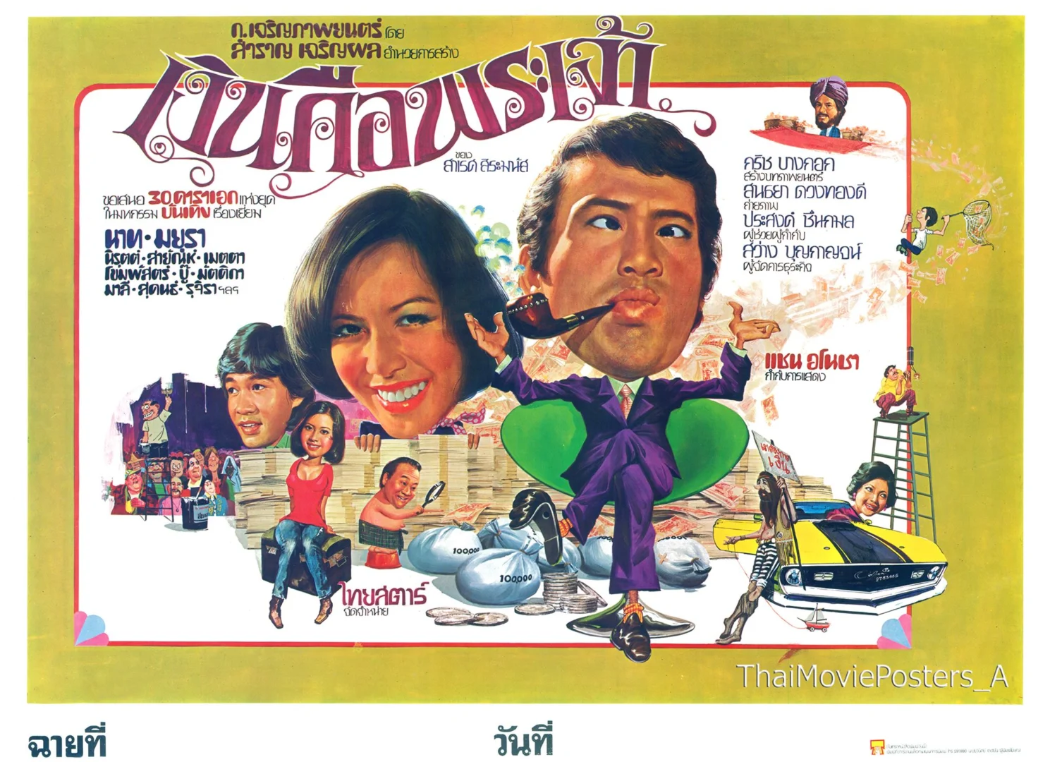 เงินคือพระเจ้า (2520/1977) ข้อความบนใบปิด ก.เจริญภาพยนตร์ โดย สำราญ เจริญผล อำนวยการสร้าง เงินคือพระเจ้า ของ สาเรศ สิระมนัส ขอเสนอ 30 ดาราแห่งยุคในมหกรรมบันเทิงเรื่องเยี่ยม (นาท ภูวนัย) มยุรา ธนะบุตร นิรุตติ์ ศิริจรรยา, (สายัณห์ จันทรวิบูลย์), (เมตตา รุ่งรัตน์), โขมพัสตร์ อรรถยา, บู๊ วิบูลย์นันท์, (นก มัตติกา เกียรติสกุล), มาลี เวชประเสริฐ, (สุคนธ์ คิ้วเหลี่ยม), รุจิรา อิศรางกูร ฯลฯ กริช บางกอก สร้างบทภาพยนตร์ สนธยา ดวงทองดี ถ่ายภาพ ประสงค์ ชื่นกมล ผู้ช่วยผู้กำกับ สว่าง บุญกาญจน์ ผู้จัดการธุรกิจ แชน อโนชา กำกับการแสดง ไทยสตาร์ จัดจำหน่าย ชื่อ : เงินคือพระเจ้า Name : - ผลิตโดย : ก.เจริญภาพยนตร์ จัดจำหน่าย : ไทยสตาร์ภาพยนตร์ วันที่เข้าฉาย : 2520 เงินคือพระเจ้า (2520) *ที่มา :Thai Movie Posters