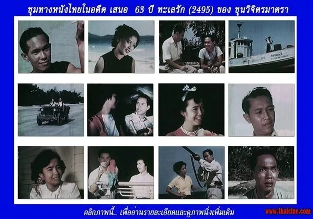 ทะเลรัก เป็นภาพยนตร์แนวชีวิต ที่เรื่องราวเกิดขึ้นในหมู่บ้านชาวประมงชายทะเลระยองแถบบ้านเพ โดยตัวเอกของเรื่องคือหมึก (พิชัย วาศนาส่ง) ชาวประมงหนุ่ม ที่หลงรักมุกดา (ไขศรี ชุมะศารทูล) หญิงสาวในหมู่บ้านเดียวกัน แต่มุกดา มีชายอื่นมาหมายปอง คือคุณจำแลง ชายที่มารับซื้อไข่มุกจากชาวประมง การเข้ามาของจำแลง ทำให้ความสัมพันธ์ระหว่างมุกดาและหมึกเปลี่ยนไป มุกดาหลงรักจำแลง แต่จำแลงก็กลับพาผู้หญิงคนอื่น อย่างเช่นผกาแก้วไปนั่งเรือเล่น เมื่อจำแลงสังเกตเห็นไข่มุกที่หมึกให้กับมุกดา เขาวางแผนจะนำเอาไข่มุกนั้นมาเป็นของตัวเอง จึงวางแผนที่จะสับเปลี่ยนไข่มุกด้วยการเอาไข่มุกปลอมไปเปลี่ยน เขาจึงหลอกมุกดาว่าจะเอาไข่มุกของเธอไปทำเป็นต่างหูมุก และวางแผนในการสับเปลี่ยน เพื่อนำเอาไข่มุกนั้นไปให้กับผกาแก้ว ต่อมาสันต์พบว่าไข่มุกที่อยู่กับมุกดาเป็นไข่มุกปลอม สันต์จึงช่วยเหลือด้วยการไปขอไข่มุกคืนจากผกาแก้ว มุกดาโกรธจำแลงมากจึงมีปากเสียงกัน จำแลงทำร้ายมุกดา หมึกพยายามมาช่วย แต่มันก็อาจจะสายเกินไป . ชื่อ : ทะเลรัก Name : - ผลิตโดย : จัดจำหน่าย : - วันที่เข้าฉาย : 10 เมษายน 2496 (ฉายที่ศาลาเฉลิมกรุง)
