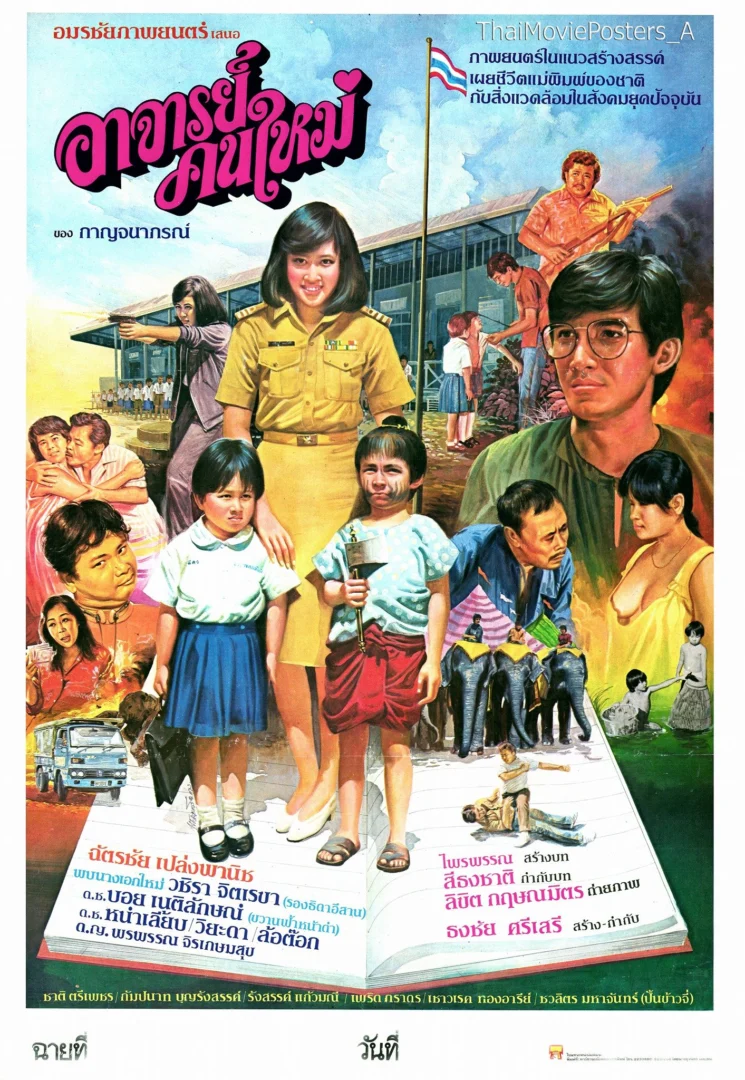 อาจารย์คนใหม่ (2529/1986) ข้อความบนใบปิด อมรชัยภาพยนตร์ เสนอ ภาพยนตร์ในแนวสร้างสรรค์ เผยชีวิตแม่พิมพ์ของชาติ กับสิ่งแวดล้อมในสังคมยุคปัจจุบัน อาจารย์คนใหม่ ของ กาญจนาภรณ์ ฉัตรชัย เปล่งพานิช พบนางเอกใหม่ วชิรา จิตเรขา (รองธิดาอีสาน) ด.ช.บอย เนติลักษณ์ (ขวานฟ้าหน้าดำ), ด.ญ.หนำเลี๊ยบ, วิยะดา อุมารินทร์, (ล้อต๊อก), ด.ญ.พรพรรณ จิรเกษมสุข ชาติ ตรีเพชร, กัมปนาท บุญรังสรรค์, รังสรรค์ แก้วมณี, เพริด ภราดร, เชาวเรศ ทองอารีย์, ชวลิต มหาจันทร์ (ปั้นข้าวจี่) ไพรพรรณ สร้างบท สีธงชาติ กำกับบท ลิขิต กฤษณมิตร ถ่ายภาพ ธงชัย ศรีเสรี สร้าง-กำกับ ชื่อ : อาจารย์คนใหม่ Name : - ผลิตโดย : อมรชัยภาพยนตร์ จัดจำหน่าย : - นำแสดงโดย : ฉัตรชัย เปล่งพานิช, วชิรา จิตเรขา, บอย เนติลักษณ์, วิยะดา อุมารินทร์ วันที่เข้าฉาย : 2529 อาจารย์คนใหม่ (2529) ใบปิดวาดโดย ไข่โปสเตอร์ *ที่มา :Thai Movie Posters
