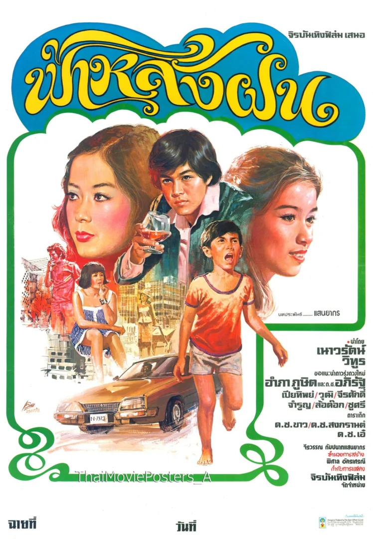 ฟ้าหลังฝน (2521/1978) พรรณี หญิงสาวแสนดีที่ใช้ชีวิตอยู่ร่วมกับ การันต์ ในบ้านเช่ากลางสลัม เธอทำงานรับจ้างทั่วไปเพื่อส่งเสียให้แฟนหนุ่มเรียนมหาวิทยาลัย โดยการันต์ให้สัญญาว่าถ้าเรียนจบจะไม่ให้เธอลำบากอีก แต่แล้วเมื่อการันต์ใกล้เรียนจบ พรรณีก็ได้รู้ว่าแฟนของเธอไปติดพันกับนักศึกษาสาวลูกเศรษฐี เธอจึงต้องทำหน้าที่คนรักที่เสียสละให้คนที่รักไปมีความสุขกับหญิงอื่น เพียงเพราะหญิงอื่นนั้นรวยกว่า ชื่อ : ฟ้าหลังฝน Name : - ผลิตโดย/จัดจำหน่าย : วันที่เข้าฉาย : 12 พฤษภาคม 2521 (ฉายที่โรงภาพยนตร์โคลีเซี่ยม) ฟ้าหลังฝน (2521) ใบปิดวาดโดย ชวนะ บุญชู *ที่มา :Thai Movie Posters