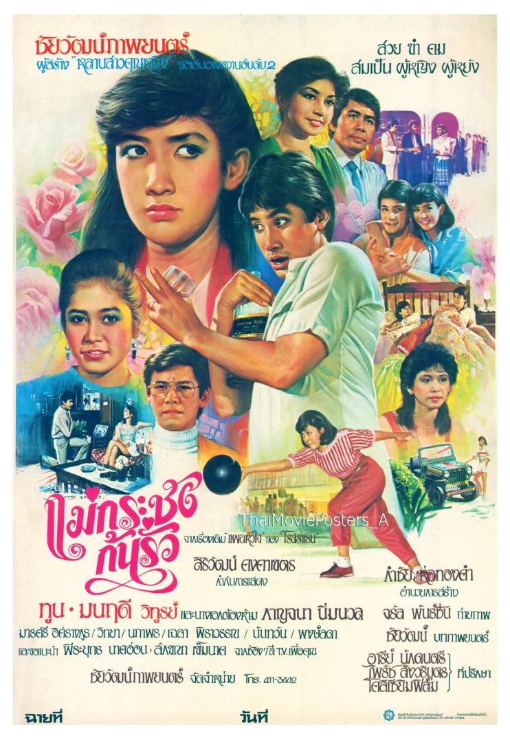 แม่กระชังก้นรั่ว (2526/1983) ข้อความบนใบปิด ชัยวัฒน์ภาพยนตร์ ผู้สร้าง “หลานสาวคุณหญิง” ขอเสนอผลงานอันดับ 2 สวย ขำ คม สมเป็น ผู้หญิง ผู้หยัง แม่กระชังก้นรั่ว จากเรื่องเดิม “แผลหัวใจ” ของ “โรสลาเรน” สิริวัฒน์ คงคาเขตร กำกับการแสดง ทูน หิรัญทรัพย์ มนฤดี ยมาภัย วิฑูรย์ กรุณา และนางเอกต้องห้าม กาญจนา นิ่มนวล มารศรี อิศรางกูร, วิทยา สุขดำรงค์, นภาพร หงสกุล, เฉลา-พิราวรรณ ประสพศาสตร์, นันทวัน สุวรรณปิยะศิริ, พงษ์ลดา พิมลพรรณ และขอแนะนำ พีระยุทธ นาคอ่อน-ลักขณา เข็มนาค จากช่อง 7 สี T.V.เพื่อคุณ กำชัย ห่อทองคำ อำนวยการสร้าง จรัล พันธุ์ชื่น ถ่ายภาพ ชัยวัฒน์ บทภาพยนตร์ อารีย์ นักดนตรี-ไพรัช สังวริบุตร-โคลีเซี่ยมฟิล์ม ที่ปรึกษา ชัยวัฒน์ภาพยนตร์ จัดจำหน่าย