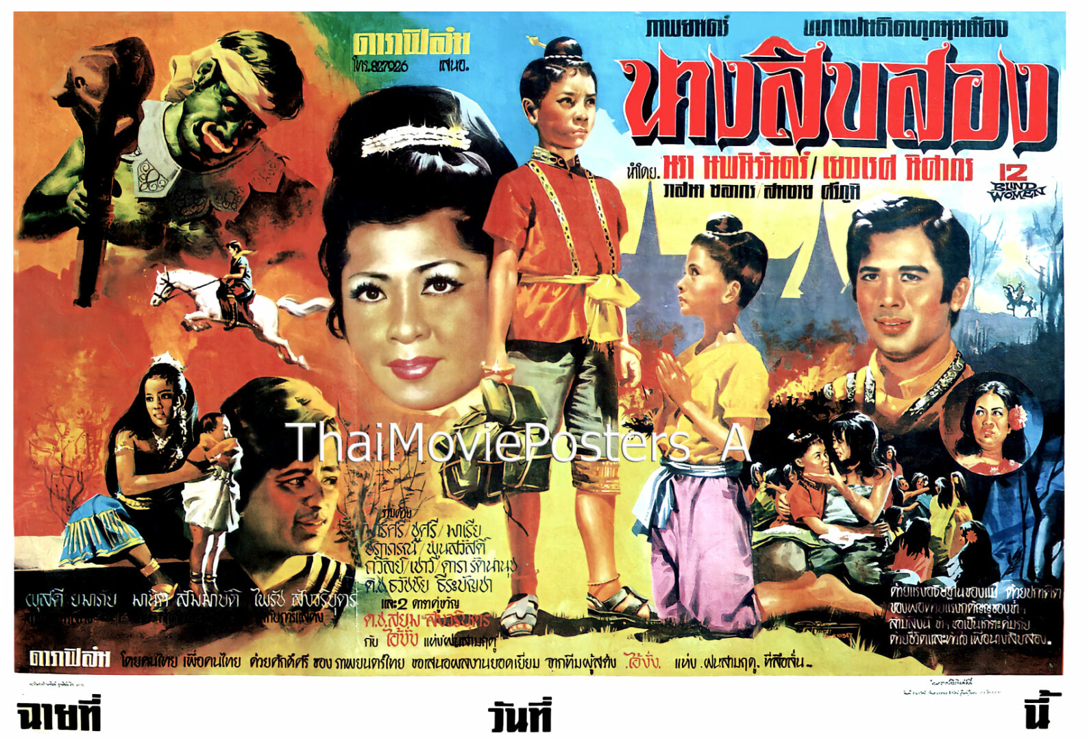 นางสิบสอง (2517/1974) ข้อความบนใบปิด ดาราฟิล์ม เสนอ นางสิบสอง 12 BLIND WOMEN นำโดย นรา นพนิรนันดร์ เยาวเรศ นิสากร วาสนา ชลากร สมชาย ศรีภูมิ ร่วมด้วย มารศรี อิศรางกูร, (ชูศรี มีสมมนต์), มาเรีย เกตุเลขา, (ชฎาพร วชิรปราณี), พูนสวัสดิ์ ธีมากร, ถวัลย์ คีรีวัตร, เชาว์ แคล่วคล่อง, ดารา รัตนานุช ด.ช.ธวัชชัย ธีระบัญชา และ 2 ดาราคู่ขวัญ ด.ช.สยม สังวริบุตร กับ ไอ้งั่ง แห่ง”ฝนสามฤดู” ผุสดี ยมาภัย อำนวยการสร้าง มานิต สัมมาบัติ ลำดับภาพ ไพรัช สังวริบุตร กำกับการแสดง ดาราฟิล์ม โดยคนไทย เพื่อคนไทย ด้วยศักดิ์ศรีของภาพยนตร์ไทย ขอเสนอผลงานยอดเยี่ยม จากทีมผู้สร้าง ไอ้งั่ง แห่ง ฝนสามฤดู ที่ลือลั่น ด้วยแรงอธิษฐานของแม่ ด้วยปกาศิตของพ่อ ด้วยแรงกตัญญูของข้า สามสิ่งนี้ ข้าขอเป็นเกราะคุ้มภัย ด้วยชีวิตและหัวใจ เพื่อนางสิบสอง ชื่อ : นางสิบสอง Name : 12 BLIND WOMEN ผลิตโดย : จัดจำหน่าย : - วันที่เข้าฉาย : 2517 นางสิบสอง (2517) *ที่มา :Thai Movie Posters