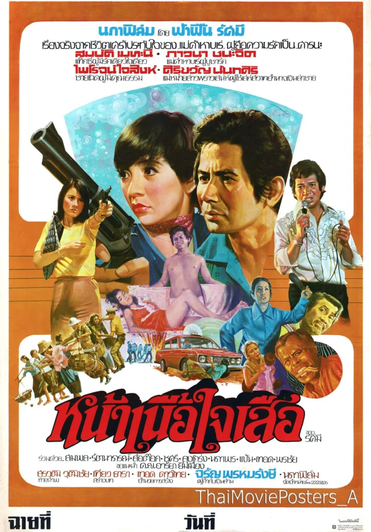 หน้าเนื้อใจเสือ (2520/1977) เรื่องจริงจากชีวิตเศร้าประทับใจของแม่ค้าหาบเร่ ผู้ถือความรักเป็นสรณะ(แอ๊ด สมบัติ เมทะนี) แท็กซี่ผู้มีรักเดียวใจเดียว (ภาวนา ชนะจิต) แม่ค้าหาบเร่ผู้บูชาความรัก (ไพโรจน์ ใจสิงห์) ชายโฉดผู้มีคุณธรรม ศิริขวัญ นันทศิริ แม่หม้ายสาวพราวเสน่ห์ผู้ใช้เล่ห์สวาทอำนาจเงินล่าชาย ชื่อ : หน้าเนื้อใจเสือ Name : - ผลิตโดย/จัดจำหน่าย : วันที่เข้าฉาย : 21 พฤษภาคม 2520 หน้าเนื้อใจเสือ (2520) ใบปิดวาดโดย ทองดี ภานุมาศ *ที่มา :Thai Movie Posters