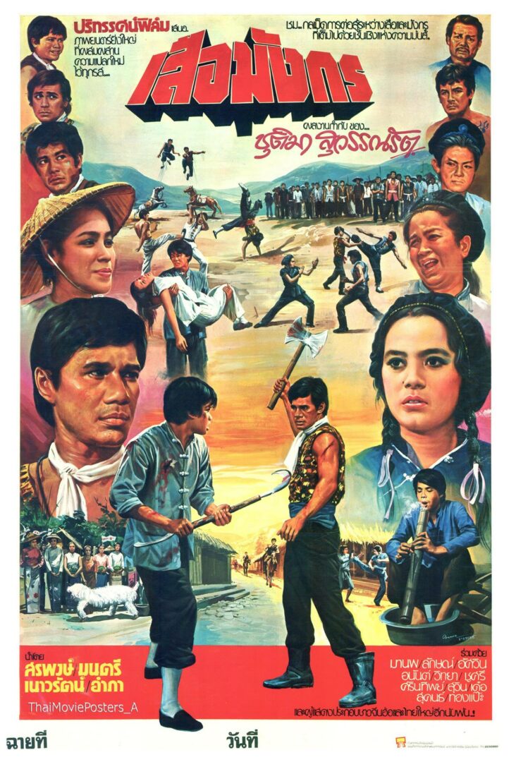 เสือมังกร (2524/1981) ข้อความบนใบปิด ปริทรรศน์ฟิล์ม เสนอ ภาพยนตร์ยิ่งใหญ่ที่ผสมผสานความแปลกใหม่ไว้ทุกรส ชม..กลเม็ดการต่อสู้ระหว่างเสือและมังกร ที่เต็มไปด้วยชั้นเชิงแห่งความมันส์ เสือมังกร ผลงานกำกับของ...ชุติมา สุวรรณรัต นำโดย สรพงศ์ ชาตรี มนตรี เจนอักษร เนาวรัตน์ ยุกตะนันท์ (แอ๊ว อำภา ภูษิต) ร่วมด้วย (มานพ อัศวเทพ), ลักษณ์ อภิชาติ, (ตึ๋ง อัศวิน รัตนประชา), อนันต์ สัมมาทรัพย์, วิทยา สุขดำรงค์, (ชูศรี มีสมมนต์), (ศรินทิพย์ ศิริวรรณ), (สุวิน สว่างรัตน์), เด๋อ, (สุคนธ์ คิ้วเหลี่ยม), ทองแป๊ะ และผู้แสดงประกอบชาวจีนฮ่อและไทยใหญ่อีกนับพัน