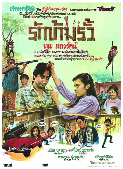 รักข้ามรั้ว (2525/1982) ข้อความบนใบปิด ปริทรรศน์ฟิล์ม โดย ชุติมา สุวรรณรัต ขอมอบผลงานอันต่อจาก “ผึ้งแตกรัง” ฮา...นับครั้งไม่ถ้วน ตั้งแต่ต้นจนจบ ตลอดเวลา 120 นาที ซึ้งใจกับ 10 เพลงฮิตลูกทุ่งที่ท่านๆชอบ... รักข้ามรั้ว ทูน หิรัญทรัพย์ เนาวรัตน์ ยุกตะนันท์ ส.อาสนจินดา, (เมตตา รุ่งรัตน์), อนันต์ สัมมาทรัพย์, เด๋อ ดอกสะเดา, โพธิ์ทอง, (ผจญ ดวงขจร), จุ่น, ขวัญ, ทองฮะ, บุญส่ง, สมโภชน์ ฯลฯ และนักร้องขวัญใจลูกทุ่งตลอดกาล ไพรวัลย์ ลูกเพชร เฉลิม บุตรบุรุษ ถ่ายภาพ สาโรจน์ สุวรรณรัต กำกับบท พรพรรณ สุวรรณรัต อำนวยการสร้าง ปริทรรศน์ฟิล์ม จัดจำหน่าย