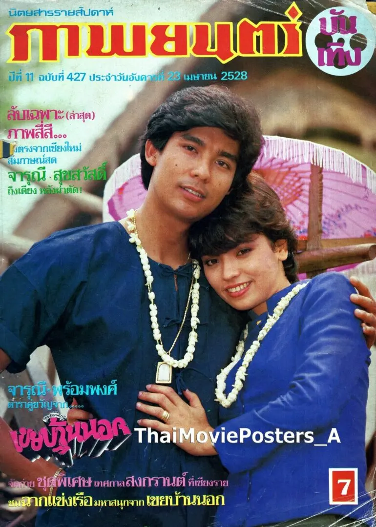 เขยบ้านนอก (2528/1985) ข้อความบนใบปิด พี.เอส.โปรโมชั่น โดย สุวิทย์ ชุติพงษ์ เสนอ ถึงสาวกทม. หัวใจคุณมีไว้วางบนผ้าขาวม้าของผมหรือเปล่า? ถึงพ่อตาและแม่ยาย...บ้านนอกอย่างผม เป็นลูกเขยท่านได้ไหม? เขยบ้านนอก ของ เพ็ญแข วงศ์สง่า พร้อมพงศ์ นพฤทธิ์ จารุณี สุขสวัสดิ์ เหมียว แมคอินทอช, สุนิตย์ นภาศรี, ชาลี อินทรวิจิตร, (ศรินทิพย์ ศิริวรรณ), ส.อาสนจินดา, สมพงษ์ พงษ์มิตร, บู๊ วิบูลย์นันท์, รอง เค้ามูลคดี ฯลฯ สุวิทย์ ชุติพงษ์ อำนวยการสร้าง สมพงษ์ ตรีบุบผา กำกับการแสดง ฟัง 3 เพลงเอก เขยบ้านนอก, เราสองคน, รักที่ขอบฟ้า ของคณะศตวรรษ ชื่อ : เขยบ้านนอก Name : Keuy Ban Nok ผลิตโดย : พี.เอส.โปรโมชั่น จัดจำหน่าย : - นำแสดงโดย : พร้อมพงศ์ นพฤทธิ์, จารุณี สุขสวัสดิ์ วันที่เข้าฉาย : 11 พฤษภาคม 2528 *เรื่องนี้ยังสร้างเป็นละครมาแล้วทั้งหมด 5 ครั้ง เขยบ้านนอก (2526) แสดงนำ : นิรุตติ์ ศิริจรรยา, มยุรา เศวตศิลา เขยบ้านนอก (2532) แสดงนำ : สุรศักดิ์ วงษ์ไทย, เพ็ญ พิสุทธิ์ เขยบ้านนอก (2544) แสดงนำ : ศุภกรณ์ กิจสุวรรณ, อาทิตยา ดิถีเพ็ญ เขยบ้านนอก (2553) แสดงนำ : เกียรติกมล ล่าทา, จิตตาภา แจ่มปฐม เขยบ้านไร่ สะใภ้ไฮโซ (2565) แสดงนำ : หัสวีร์ ภัคพงษ์ไพศาล, มุกดา นรินทร์รักษ์ เขยบ้านนอก (2528) ใบปิดวาดโดย บรรหาร สิตะพงศ์พร้อมพงศ์ นพฤทธิ์-จารุณี สุขสวัสดิ์ ใน เขยบ้านนอก (2528)พร้อมพงศ์ นพฤทธิ์-จารุณี สุขสวัสดิ์ ต้อนรับวันสงกรานต์ ปี 2528 กับหนังเรื่อง เขยบ้านนอกพร้อมพงศ์ นพฤทธิ์-จารุณี สุขสวัสดิ์ ใน เขยบ้านนอก (2528)พร้อมพงศ์ นพฤทธิ์, จารุณี สุขสวัสดิ์ และสุนิตย์ นภาศรี ใน เขยบ้านนอก (2528) เขยบ้านนอก (2528) เรื่องย่อ 1/2เขยบ้านนอก (2528) เรื่องย่อ 2/2 *รูปจาก : Thai Movie Posters
