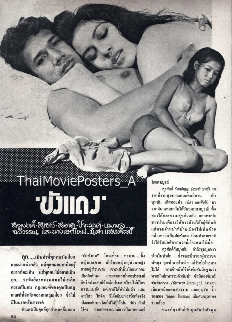 ขังแดง (2524/1981) ข้อความบนใบปิด ฟิล์มทองโปรดักชั่น โดย วินิจ ภักดีวิจิตร ฝีมือเท่านั้นที่ประกันคุณภาพ ปี 2517 สร้าง ขัง 8 ปิยะมาศ โมนยะกุล ปี 2524 จุติดาวดวงใหม่ จากเวทีนางงามสู่ห้องขังซอย นิศา แสงศิลป์ ใน... ขังแปด ของ ดาวไสว ไพจิต ทะลวงคุกโหดที่ทุกคนอยากรู้อยากเห็น แต่.. ทุกคนไม่อยากเป็น ความกดที่ถูกดัน ความมันก็เกิด และระเบิดเซ็กส์อันสุนทรีกับ “ฉวีวรรณ บุญปรก” พร้อมด้วยดาวคุกอีก 299 ชีวิต สรพงศ์ ชาตรี นพพล โกมารชุน สุเชาว์ พงศ์วิไล สอาด เปี่ยมพงษ์ศานต์ มนัสชนก ส่งศรีสุข สุพรรณี จิตต์เที่ยง เล็กทุบ, เวียง วัตดี, วาสนา คงทอง หนุ่มหน้ามลคนใหม่ รัชต์ สมบัติดี ดาราเกียรติยศ (รัตนาภรณ์ อินทรกำแหง ณ ราชสีมา), ศิริ ศิริจินดา สันทัด ศรีสัมพันธ์ ถ่ายภาพ อครชาติ ภักดีวิจิตร ผู้ช่วยช่างภาพ พินิจ วงษ์ศิริ ผู้ช่วยผู้กำกับการแสดง อุไรวรรณ ภักดีวิจิตร อำนวยการสร้าง ชื่อ : ขังแดง Name : - ผลิตโดย : ฟิล์มทองโปรดักชั่น จัดจำหน่าย : - นำแสดงโดย : สรพงศ์ ชาตรี, นพพล โกมารชุน, สุเชาว์ พงษ์วิไล, สะอาด เปี่ยมพงศ์สานต์, มนัสชนก ส่งศรีสุข วันที่เข้าฉาย : 27 มิถุนายน 2524 (ฉายที่โรงภาพยนตร์รามา-แอมบาสเดอร์) ขังแดง (2524) ใบปิดวาดโดย ชวนะ บุญชูรูปโฆษณาหนังเรื่อง ขังแดง (2524) ขังแดง (2524) เรื่องย่อ 1/3ขังแดง (2524) เรื่องย่อ 2/3ขังแดง (2524) เรื่องย่อ 3/3 *ที่มา :Thai Movie Posters