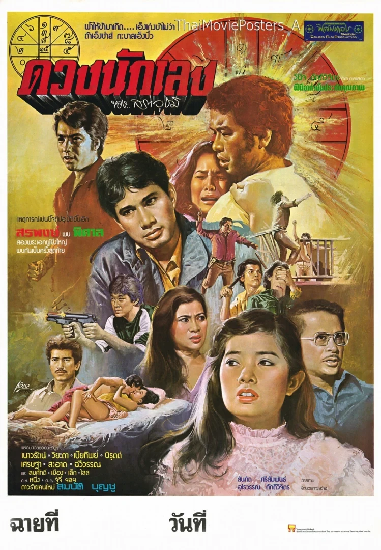 ดวงนักเลง (2526/1983) ข้อความบนใบปิด ฟิล์มทองโปรดักชั่น เหตุการณ์เช่นนี้จะไม่อุบัติขึ้นอีก สองพระเอกผู้ยิ่งใหญ่พบกันเป็นครั้งสุดท้าย สรพงศ์ ชาตรี พบ (เปี๊ยก พิศาล อัครเศรณี) เนาวรัตน์ ยุกตะนันท์, วิยะดา อุมารินทร์, เปียทิพย์ คุ้มวงศ์, นิรุตติ์ ศิริจรรยา, เศรษฐา ศิระฉายา, สะอาด เปี่ยมพงษ์สานต์, ฉวีวรรณ บุญปรก และ (สมศักดิ์ ชัยสงคราม), เมือง อพอลโล่, เล็ก, (ไสล พูนชัย), ด.ช.หนึ่ง, ด.ญ.จู๋จี๋ ฯลฯ ดาวร้ายคนใหม่ สมบัติ บุญชู ดวงนักเลง ของ สราวุฒิ วินิจ ภักดีวิจิตร กำกับการแสดง ฝีมือเท่านั้นประกันคุณภาพ สันทัด ศรีสัมพันธ์ ถ่ายภาพ อุไรวรรณ ภักดีวิจิตร อำนวยการสร้าง ชื่อ : ดวงนักเลง Name : - ผลิตโดย : ฟิล์มทองโปรดักชั่น จัดจำหน่าย : - นำแสดงโดย : สรพงศ์ ชาตรี, พิศาล อัครเศรณี, เนาวรัตน์ ยุกตะนันท์, วิยะดา อุมารินทร์ วันที่เข้าฉาย : 21 พฤษภาคม 2526 ดวงนักเลง (2526) ใบปิดวาดโดย ชวนะดวงนักเลง (2526) *ที่มา :Thai Movie Posters
