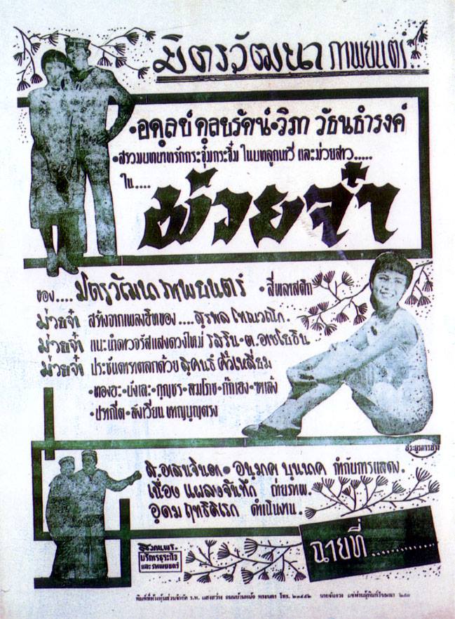 ม่วยจ๋า (2501/1958) ม่วยจ๋า เป็นภาพยนตร์ไทยที่ออกฉายในปี พ.ศ. 2501 สร้างโดย มิตรวัฒนาภาพยนตร์ โดยมี อุดม ฤทธิดิเรก เป็นผู้ดำเนินงานสร้าง กำกับการแสดงโดย ส.อาสนจินดา - อนุมาศ บุนนาค และถ่ายภาพโดย เนื่อง แผงจันทึก ภาพยนตร์เรื่องนี้สร้างมาจากบทเพลงของครูสุรพล โทณวณิก ที่ขับร้องโดย นริศ อารีย์ ปัจจุบันภาพยนตร์เรื่องนี้มีเพียงกากฟิล์มม้วนเดียวที่เหลือมาประมาณ 13 นาที