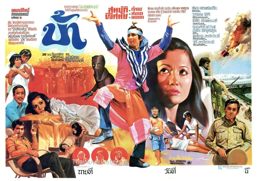 บ้า (2516/1973) เชิญไต่บันไดอารมณ์มากับเราให้พ้นบ่อน้ำเน่ากันเถิด จาก "รักต้องห้าม" ที่อึงคนึงมาแล้วทั่วแผ่นดินไทย "พันธุ์เทพ อรรถไกวัลวที" ตะบึงสร้าง "บ้า" ให้เหนือกว่าด้วยทุนมหาศาล จากดาราชุดชุบ "แมคเคนน่า" ให้เป็นขุมทองมาแล้ว 35 ม.ม.ซีเนมาสโคป สีอิสต์แมน เสียงในฟิล์ม
