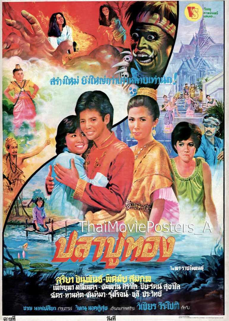 ปลาบู่ทอง (2527/1984) ข้อความบนใบปิด วิษณุภาพยนตร์ เสนอ สร้างใหม่ ยิ่งใหญ่กว่าเก่าหลายเท่านัก! ปลาบู่ทอง ในพระราชนิพนธ์ สุริยา ชินพันธ์ (พิศมัย วิไลศักดิ์) (หมู สมภพ เบญจาธิกุล) เพ็ญยุภา มณีเนตร, อัมพวัน ศิริวิไล, ปิยะรัตน์ สุขวิไล, ฉัตร มงคลชัย, (ทานทัต วิภาตะโยธิน), จันทิมา, รุ่งโรจน์, ชุลี, ประวิทย์ ชาญ นาคเปลี่ยว ถ่ายภาพ วิษณุ นาคสู่สุข อำนวยการสร้าง วิเชียร วีระโชติ กำกับ