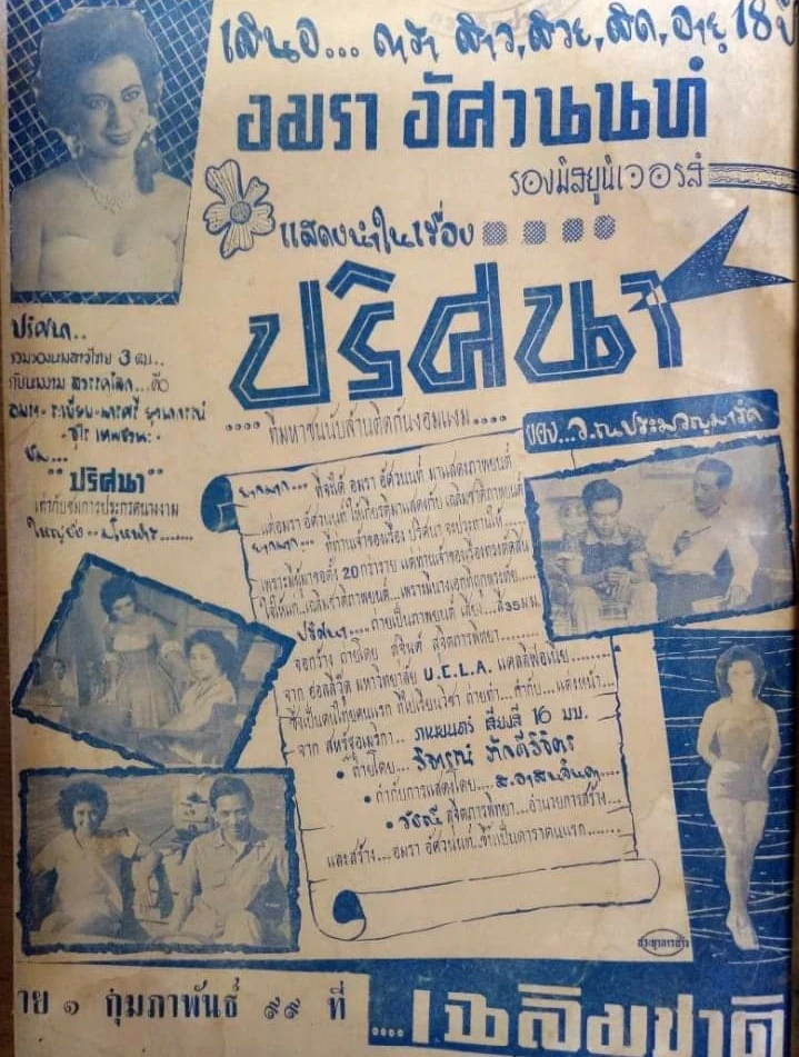 ปริศนา (2498/1955) ดาราสาว, สวย, สด, อายุ 18 ปี อมรา อัศวนนท์ รองมิสยูนิเวอรส์ แสดงนำในเรื่อง ปริศนา ที่มหาชนนับล้านติดกันงอมแงม ชม..ปริศนา เท่ากับชมการประกวดนางงามใหญ่ยิ่ง..มโหฬาร.. เมื่ออายุได้ 19 ปี ปริศนากลับมาประเทศบ้านเกิดอีกครั้ง หลังจากถูกส่งไปอยู่กับ วิรัช ซึ่งมีศักดิ์เป็นอาที่อเมริกา การกำเนิดของปริศนาเป็นปริศนาสมดังชื่อ เพราะเธอเกิดหลังจากที่ พระวินิจมนตรี บิดาเสียชีวิตได้ 6 เดือน คุณนายสมร ผู้เป็นมารดาจึงถูกตราหน้าว่ามีชู้ ชีวิตความเป็นอยู่ที่อเมริกาทำให้ปริศนามีความมั่นใจในตัวเอง ทำให้ชายไทยหลายคนตกหลุมรักปริศนา ทันทีที่เห็นรูปลักษณ์อันปราดเปรียวและทันสมัย รวมทั้ง ประวิช ที่กำลังตามจีบ อนงค์ พี่สาวของปริศนาก็หันมาจีบปริศนาแทน ปริศนาสมัครเป็นครูสอนภาษา เมื่อเห็นครูยังเด็ก ท่านหญิงรัตนาวดี กับผองเพื่อนจึงรุมแกล้ง แต่ด้วยความมีไหวพริบของปริศนาก็สามารถกำราบนักเรียนจนอยู่หมัดในเวลาอันรวดเร็ว และกลายเป็นที่รักใคร่ของเหล่านักเรียน ช่วงเวลานั้น คนรอบข้างของ ม.จ. พจน์ปรีชาเอาแต่พูดถึงหญิงสาวที่ชื่อปริศนา ทั้ง ประวิช ลูกพี่ลูกน้องและ ท่านหญิงรัตนาวดี น้องสาว กระทั่งท่านพจน์ได้เจอปริศนาตัวจริง ก็ต้องตกตะลึงเพราะความมีเสน่ห์สมคำร่ำลือ ทำให้ท่านพจน์ตกหลุมรักปริศนาอย่างเฉียบพลัน ประวิชผู้ซึ่งคลั่งไคล้ปริศนาอย่างหนัก ขอร้องให้ท่านพจน์ช่วยเป็นพ่อสื่อชักนำความรักให้ ปริศนาเข้าใจผิดคิดว่าท่านพจน์ไม่ได้รักตนจึงโกรธท่านพจน์เป็นอันมากส่วนประวิช หลังจากช้ำรักจากปริศนาก็กลับไปหาอนงค์และสมหวังในภายต่อมา ระหว่างนั้น ปริศนามีเพื่อนชายใหม่ ชื่อ อานนท์ ซึ่งอาศัยอยู่ข้างบ้าน ด้วยความที่ไปร่ำเรียนมาจากเมืองนอกเหมือนกันทำให้ทั้งสองคุยกันถูกคอและสนิทสนมกันอย่างรวดเร็ว ผู้คนต่างลือกันไปว่าปริศนาคบหากับอานนท์ ท่านพจน์จึงหนีไปเชียงใหม่เพื่อรักษาแผลใจ เป็นเหตุให้ล้มป่วยลงปริศนาเพิ่งรู้หัวใจตนเองจึงรีบมาพยาบาลท่านพจน์จนอาการดีวันดีคืน ในที่สุด ทั้งสองก็เข้าใจกันและตกลงหมั้นหมายกันอย่างเงียบๆ คุณหญิงราชวัลลภ แม่ของ รตี น้องสาวต่างมารดาของประวิช ที่ตั้งใจจะจับท่านพจน์เป็นลูกเขย รีบไปใส่ไฟเกี่ยวกับชาติตระกูลของปริศนาให้เสด็จอาของท่านพจน์ฟังแต่กลายเป็นว่าคุณหญิงราชวัลลภต้องหน้าหงาย เมื่อวิรัชปรากฏตัวพร้อมจดหมายของพระวินิจมนตรีที่ระบุว่าปริศนาเป็นลูกสาวของตน ปริศนาทั้งได้คลี่คลายลงไปพร้อมๆ กับเรื่องน่ายินดีระหว่างท่านพจน์และปริศนา