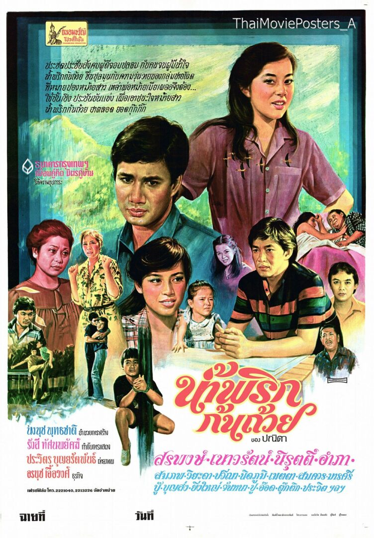 น้ำพริกก้นถ้วย (2525/1982) ข้อความบนใบปิด ถนอมขวัญโปรดั๊กชั่น ประชดประชันสังคมผู้ดีจอมปลอม กับคนจนผู้มีน้ำใจ น้ำพริกก้นถ้วย ชื่นชุลมุนกับความวุ่นวายของกลุ่มชายโฉด ที่หมายปองหม้ายสาว เหล่าพ่อหม้ายเมียเผลอจึงต้อง ใช้ชั้นเชิงประชันขันแข่ง เพื่อเอาชนะใจหม้ายสาว น้ำพริกก้นถ้วย ฮาตลอด ยอดกุ๊กกิ๊ก ธนาคารกรุงเทพฯเพื่อนคู่คิด มิตรคู่บ้าน ให้ความอุปการะ น้ำพริกก้นถ้วย ของ ปณิดา สรพงศ์ ชาตรี เนาวรัตน์ ยุกตะนันท์ นิรุตติ์ ศิริจรรยา (แอ๊ว อำภา ภูษิต) (หมู สมภพ เบญจาธิกุล), วิยะดา อุมารินทร์, ปวีณา ปิจเปี่ยมกิจ, นิดภูมิ พัฒนายุทธ, (เมตตา รุ่งรัตน์), สมควร กระจ่างศาสตร์, มารศรี อิศรางกูร, บู๊ วิบูลย์นันท์, บุญส่ง ดวงดารา, ยิ่งใหญ่ อายะนันท์, จันทนา ศิริผล, ปู, อ๊อด, ตุ๊กติ๊ก, ประวิตร ฯลฯ นงนุช พุทธชาติ อำนวยการสร้าง (รังสี ทัศนพยัคฆ์) กำกับการแสดง ประวิตร บุญยรัตพันธ์ ถ่ายภาพ อรนุช เอื้อวงศ์ ธุรกิจ เฟรชฟิล์ม จัดจำหน่าย