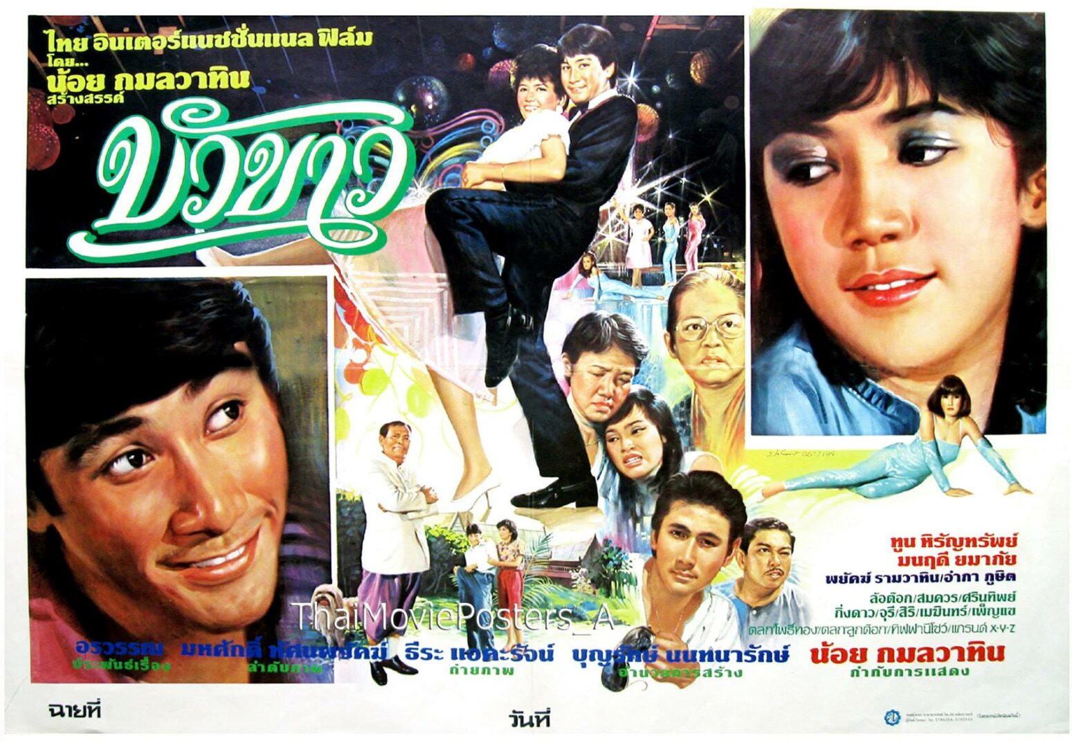 บัวขาว (2526/1983) ข้อความบนใบปิด ไทยอินเตอร์แนชั่นแนลฟิล์ม โดย น้อย กมลวาทิน สร้างสรรค์ บัวขาว ทูน หิรัญทรัพย์ มนฤดี ยมาภัย พยัคฆ์ รามวาทิน (แอ๊ว อำภา ภูษิต) (ล้อต๊อก), สมควร กระจ่างศาสตร์, (ศรินทิพย์ ศิริวรรณ), กิ่งดาว ดารณี, จุรี โอศิริ, สิริ, เมฆินทร์, เพ็ญแข, ตลกโพธิ์ทอง, ตลกลูกต๊อก, ทิฟฟานีโชว์, แกรนด์ X-Y-Z อรวรรณ ประพันธ์เรื่อง มหศักดิ์ ทัศนพยัคฆ์ ลำดับภาพ ธีระ แอคะรัจน์ ถ่ายภาพ บุญรักษ์ นนทนารักษ์ อำนวยการสร้าง น้อย กมลวาทิน กำกับการแสดง